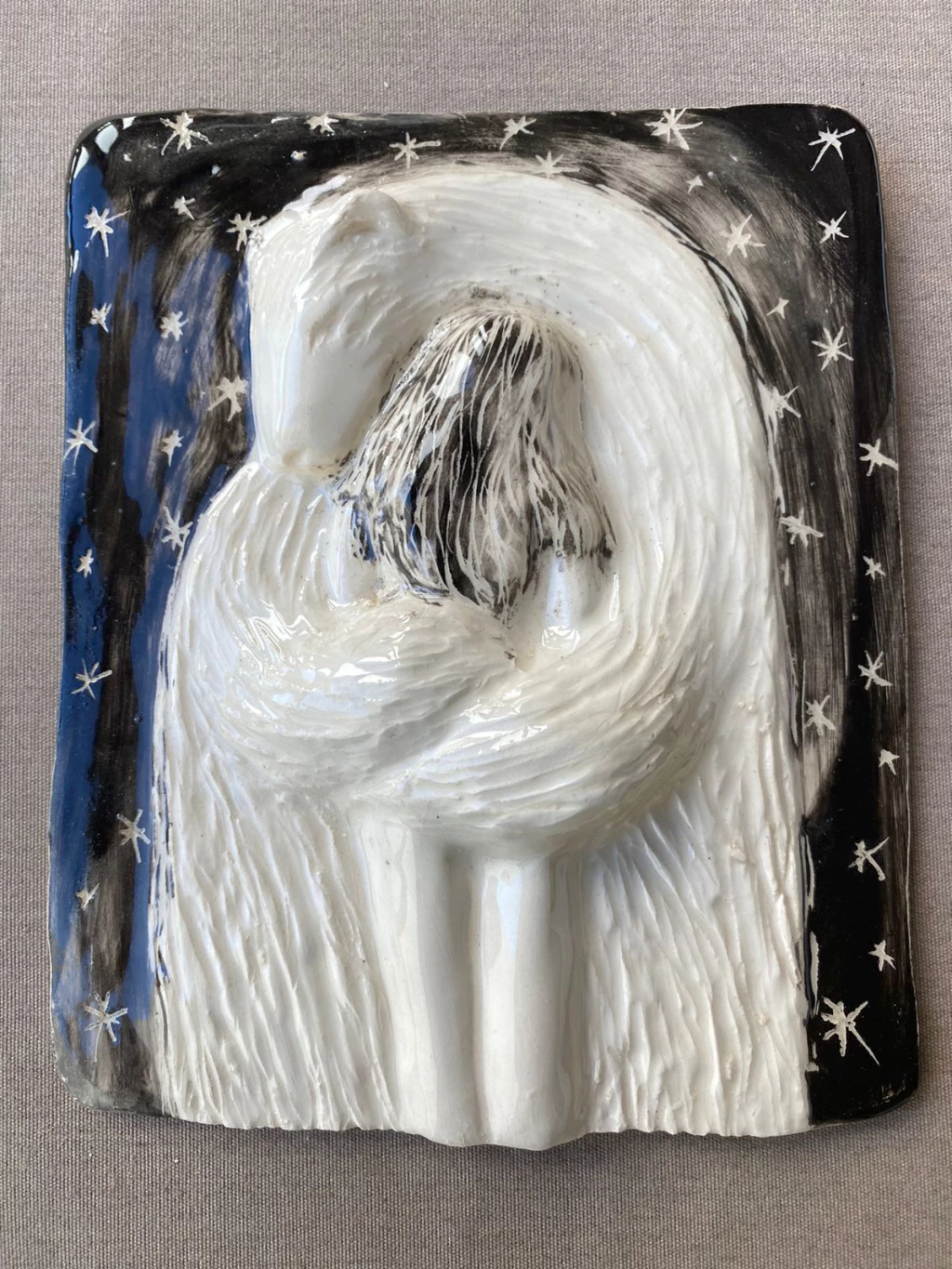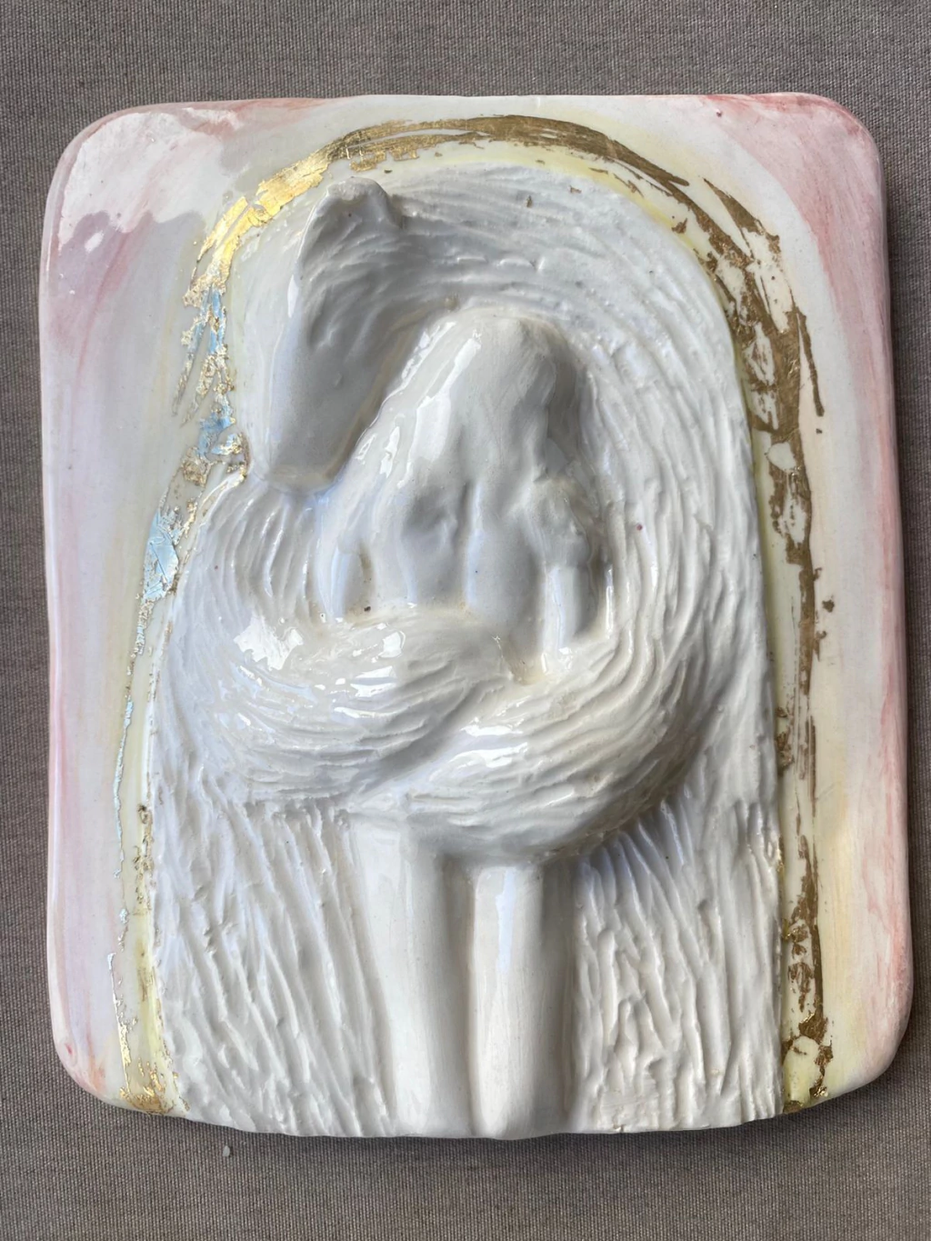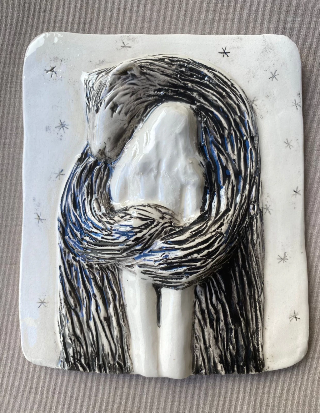 En el oráculo corporal, la artista Maica González, crea relieves de cerámica que buscan dar forma a emociones invisibles. A través de gestos y posturas, construye narrativas visuales en las que lo físico, lo emocional y lo espiritual se entrelazan, proponiendo al cuerpo como un oráculo visual y como un puente hacia lo intangible.