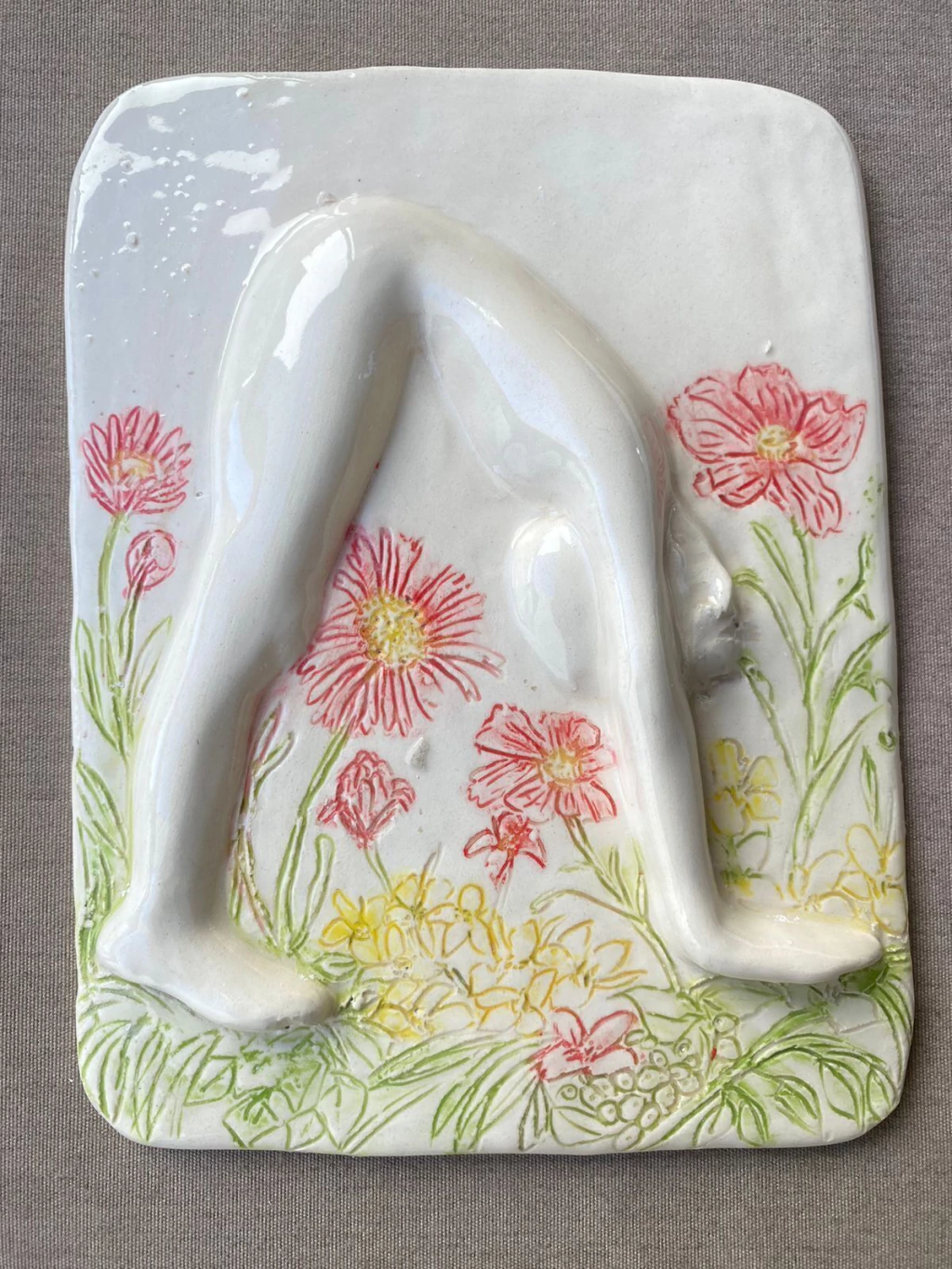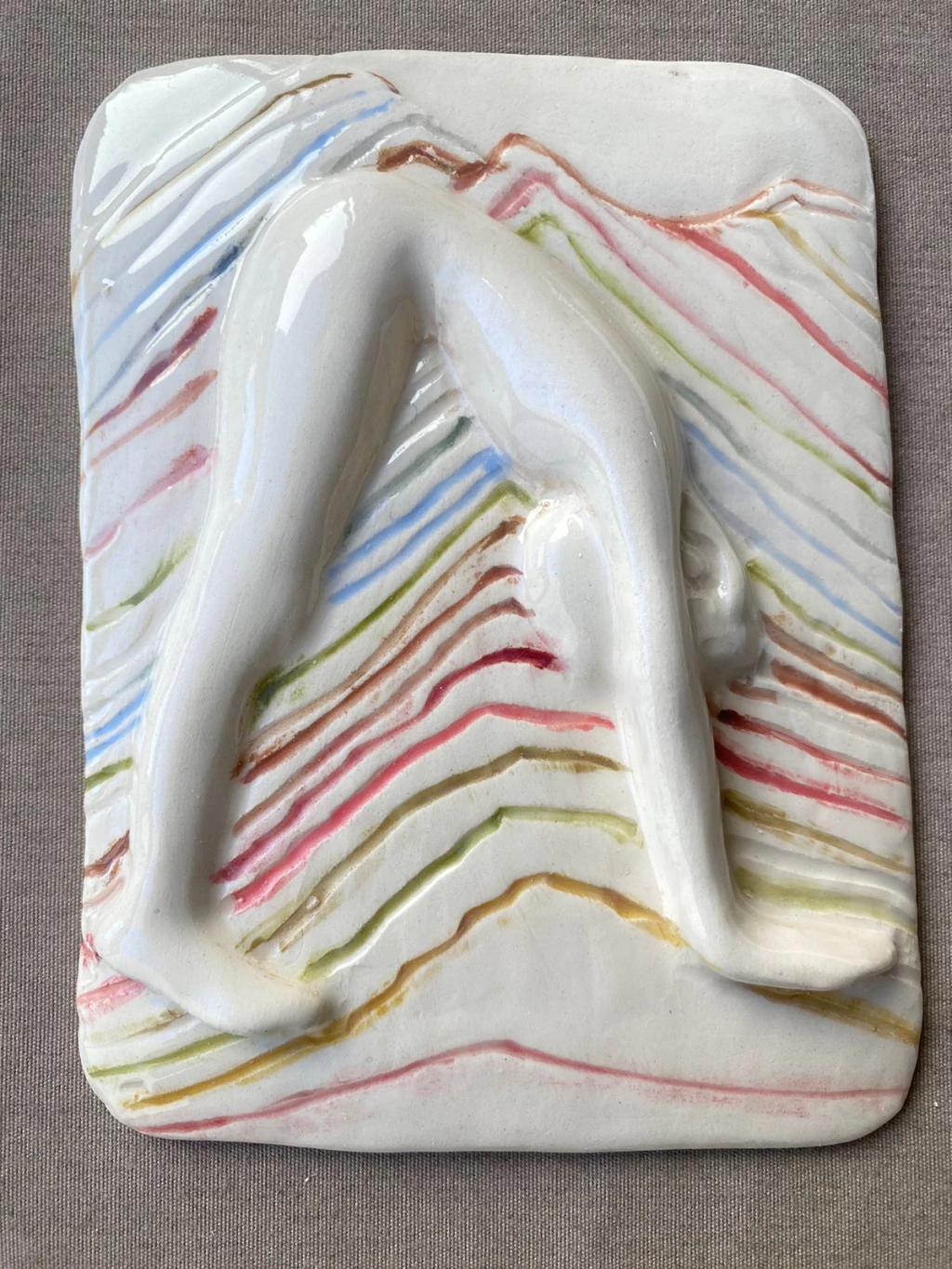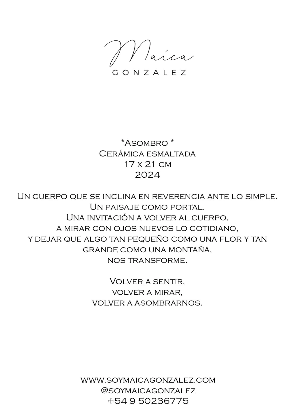 En el oráculo corporal, la artista Maica González, crea relieves de cerámica que buscan dar forma a emociones invisibles. A través de gestos y posturas, construye narrativas visuales en las que lo físico, lo emocional y lo espiritual se entrelazan, proponiendo al cuerpo como un oráculo visual y como un puente hacia lo intangible.